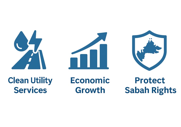Fokus kepada isu rakyat air, elektrik, peluang pekerjaan, pendidikan & hak-hak Sabah